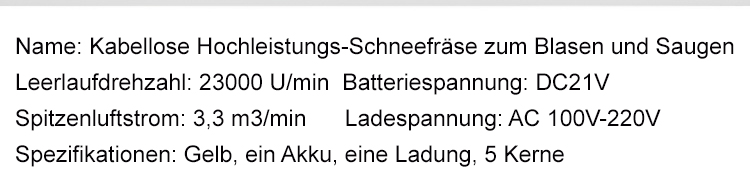 Kabellose Hochleistungs-Schneefräse zum Blasen und Saugen